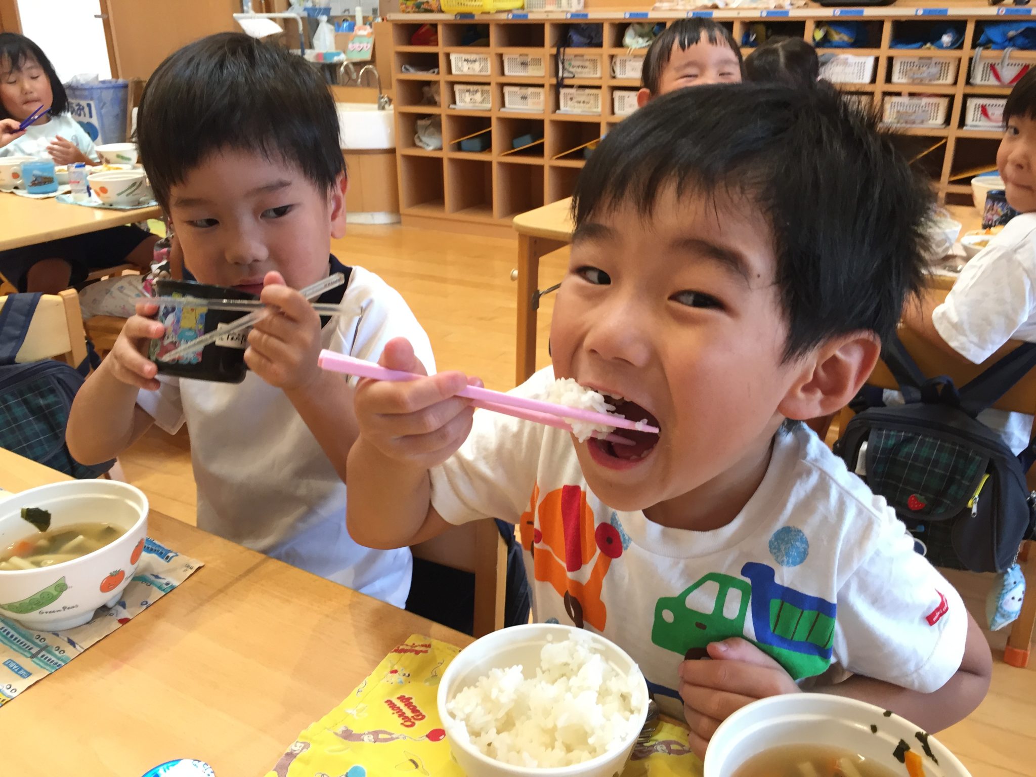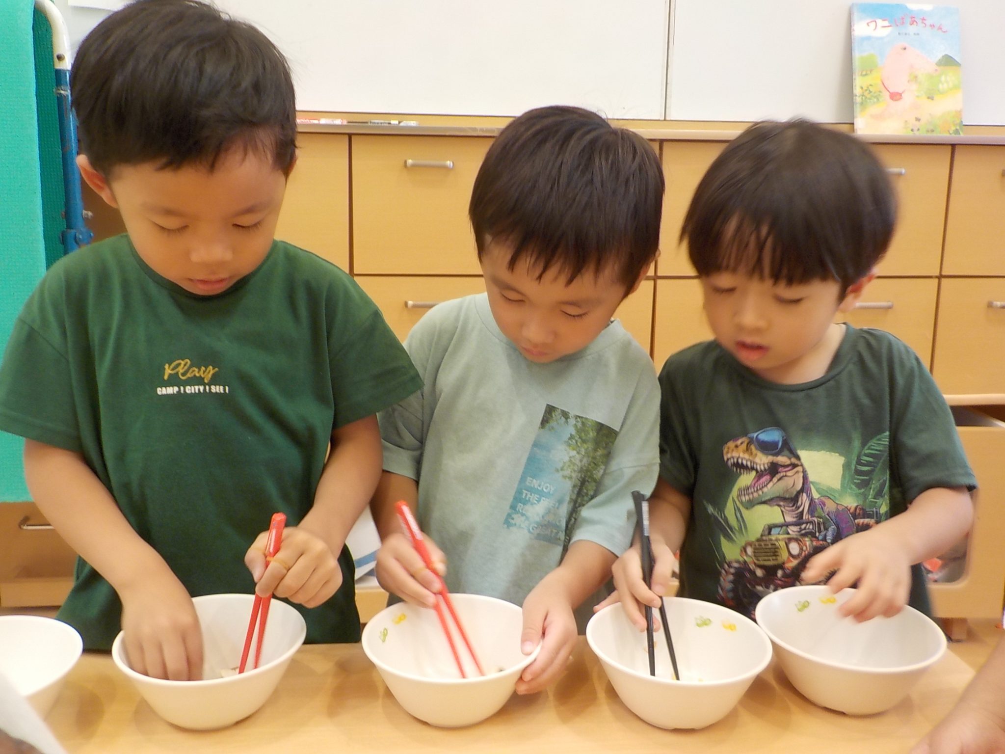 給食の時間に、お箸がんばりタイムを作り少しづつ取り組んでいきます。ご家庭でもぜひ挑戦してみてくださいね!