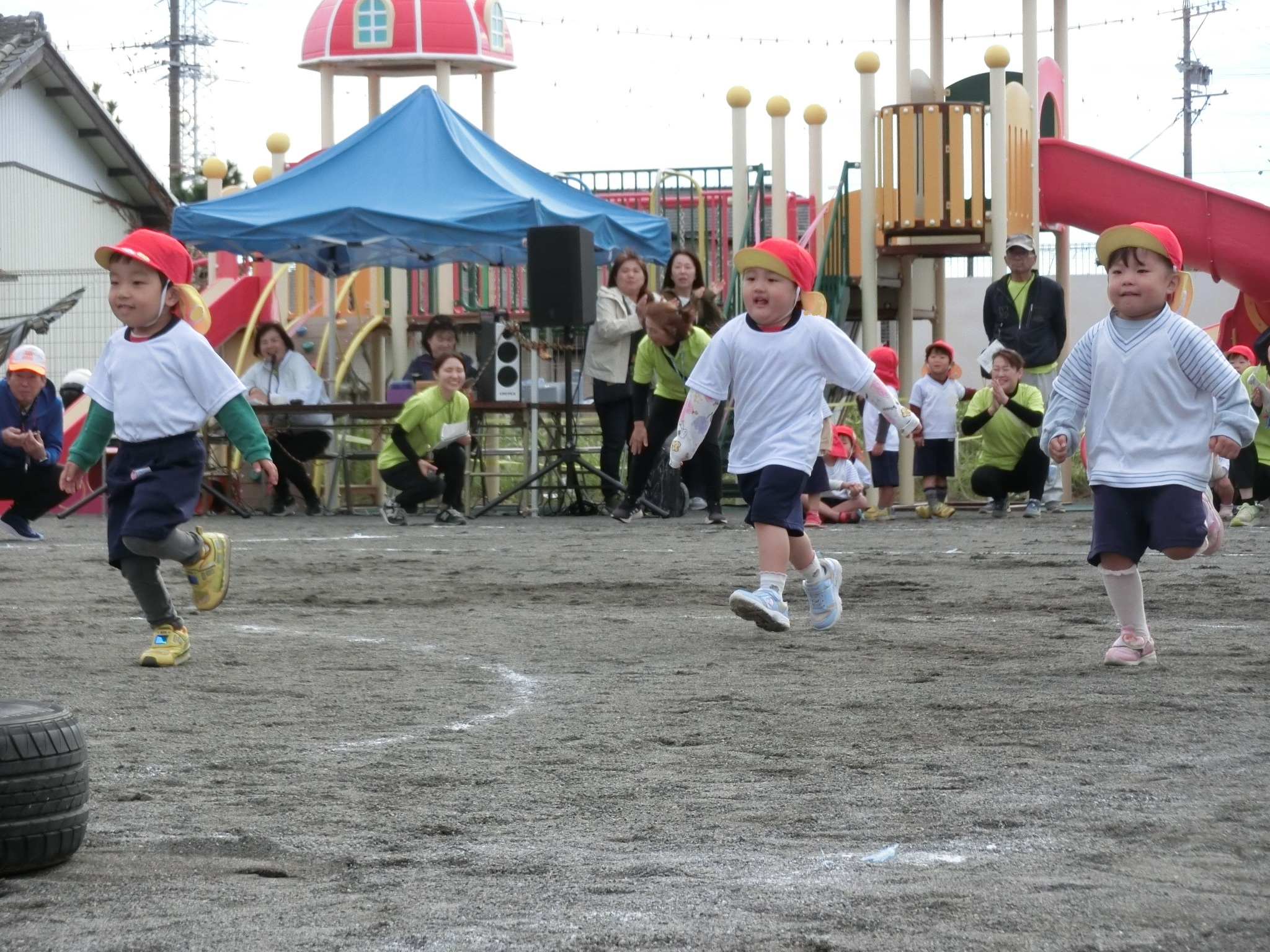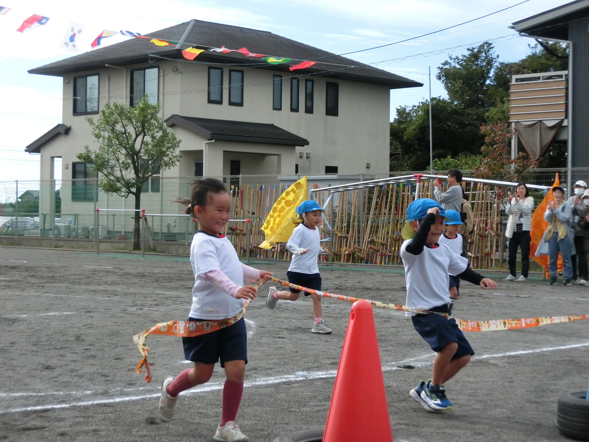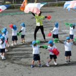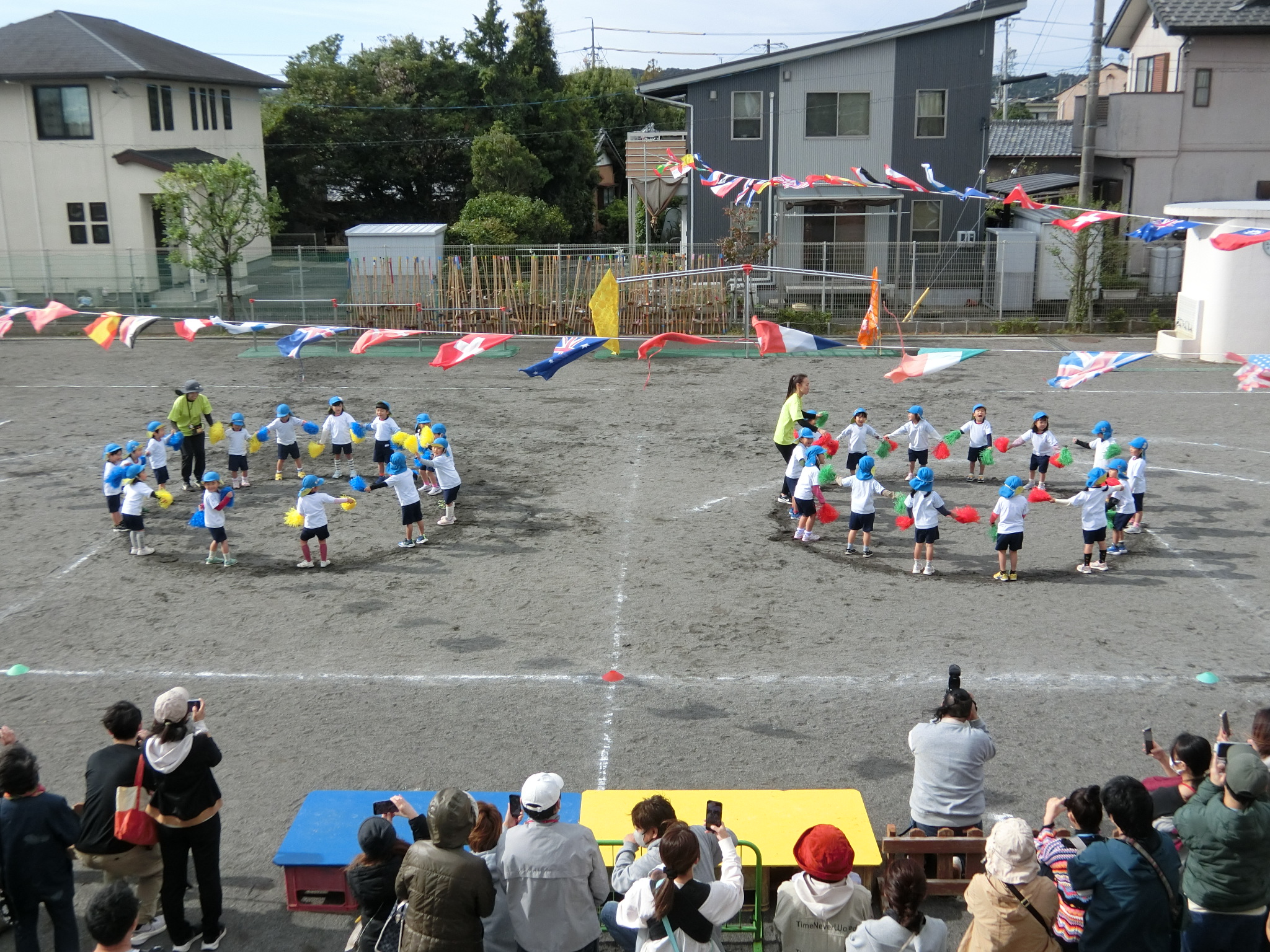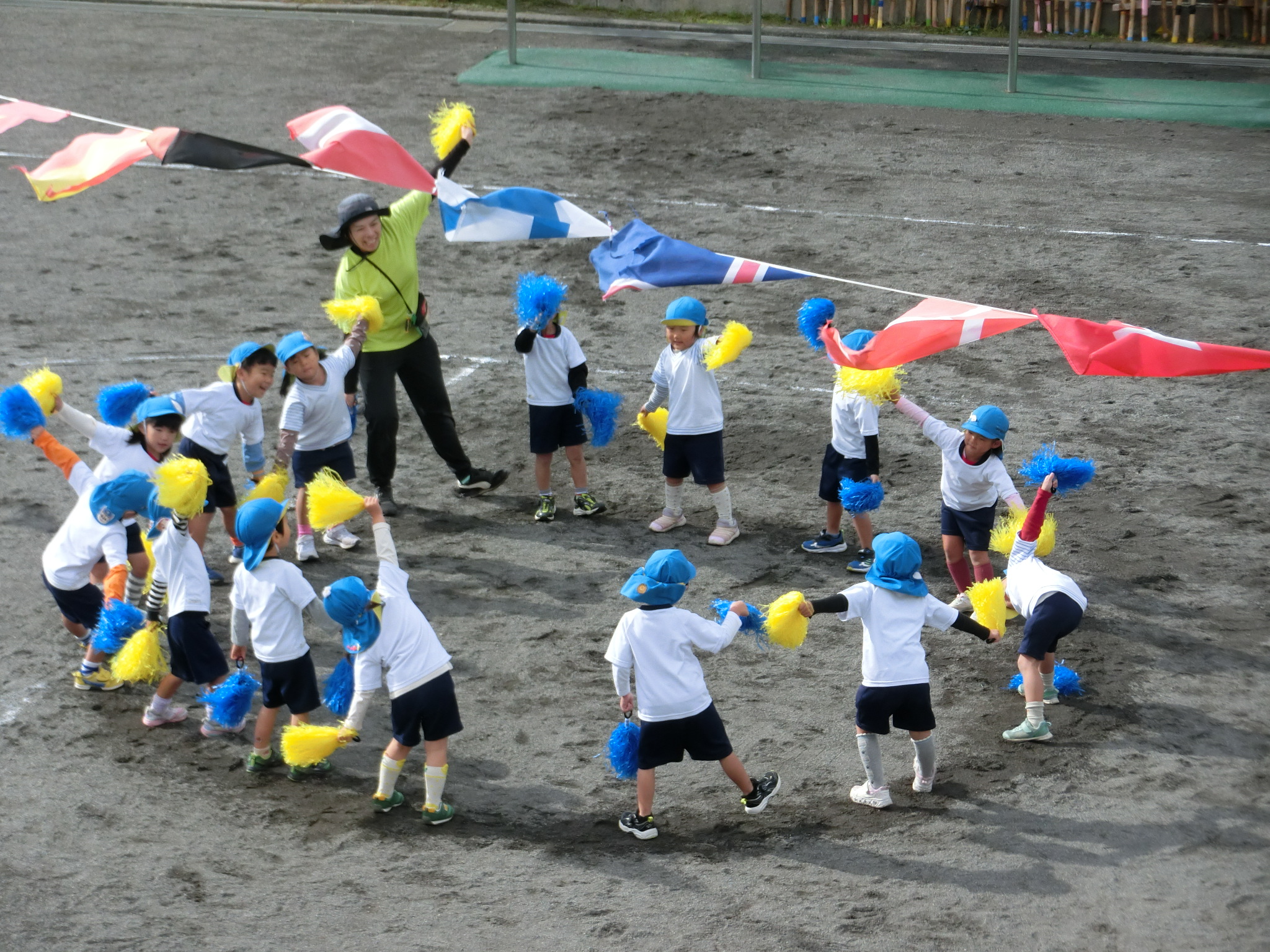 赤組さんは、初めての運動会。ドキドキしたけれど頑張りました。青組さんは、いろいろな事に挑戦し取り組みました。黄組さんは、最後の運動会。自分の力、友達との力を合わせ、心を一つに頑張りました。子どもたちの素敵な笑顔がたくさん見られました。皆さんの温かい拍手と応援ありがとうございました。