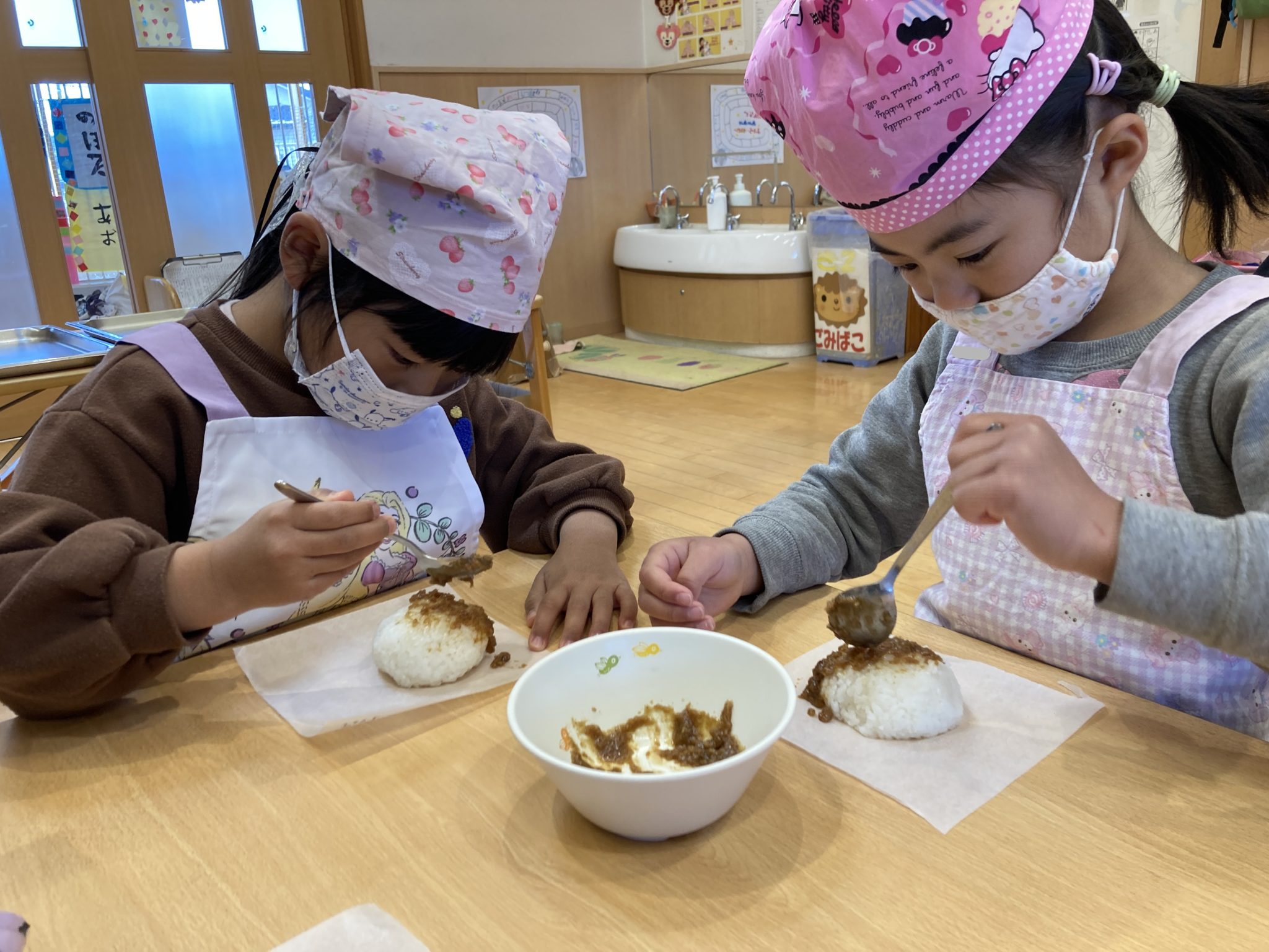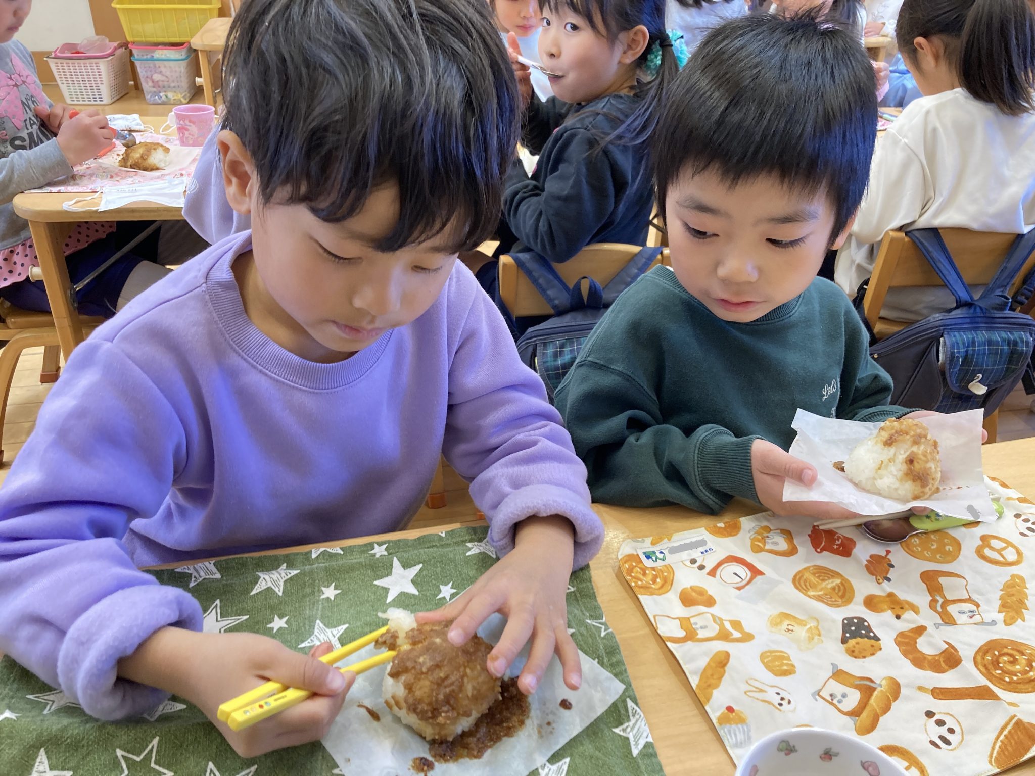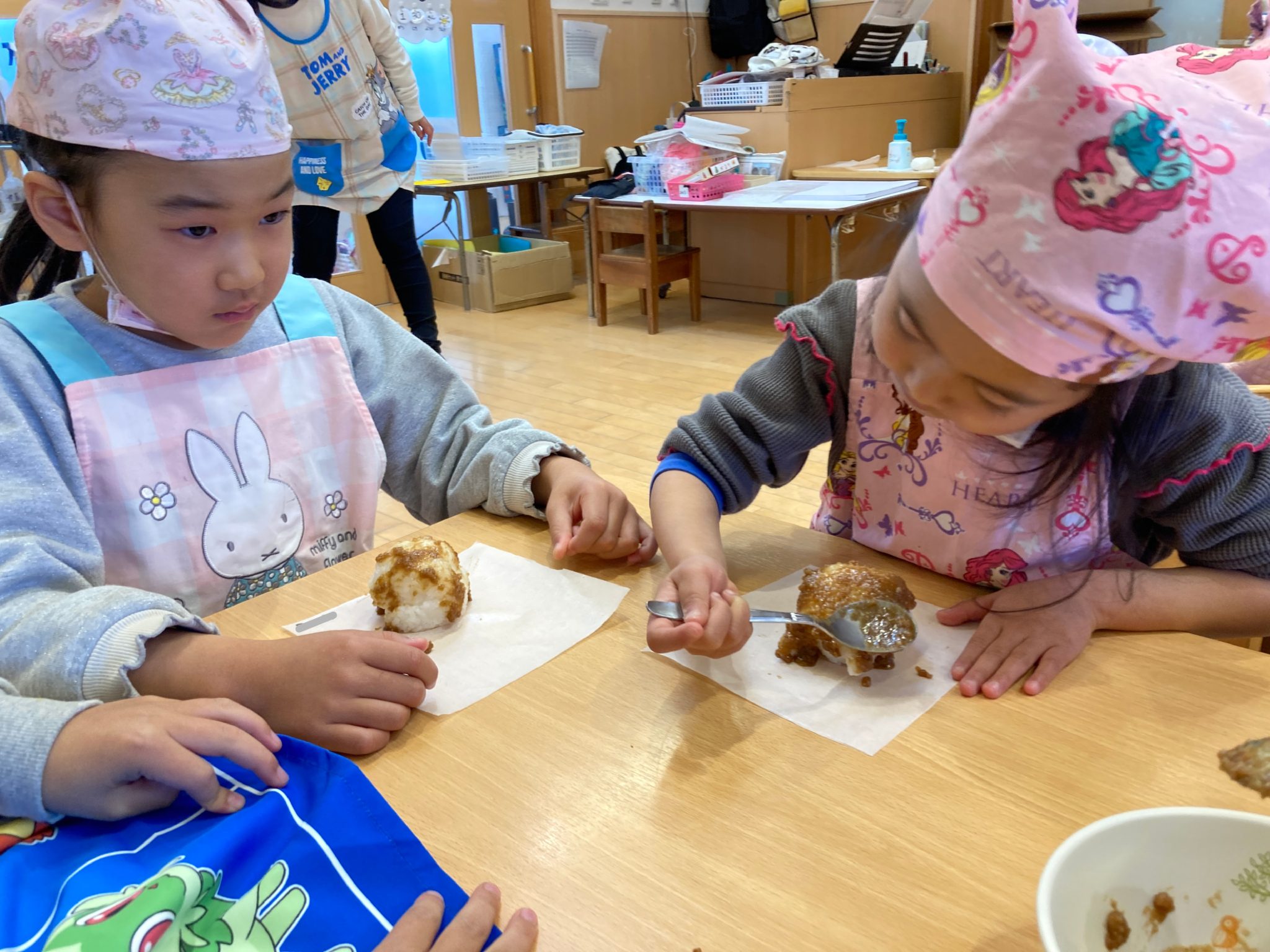 完成した味噌おにぎりは給食の時間においしく食べ、大満足の子どもたちでした♡